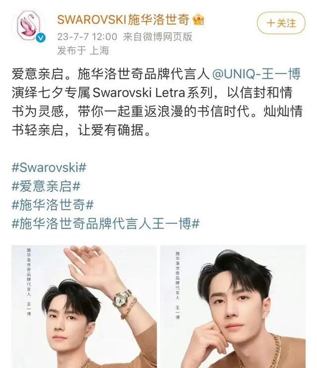 每年的7月7日是七七事变纪念日,这一天,施华洛世奇品牌方居然写出了这样的宣传语:“ 爱意亲启,施华洛世奇品牌携代言人王一博演绎七夕专属系列,带你一起重返浪漫的书信时代”。