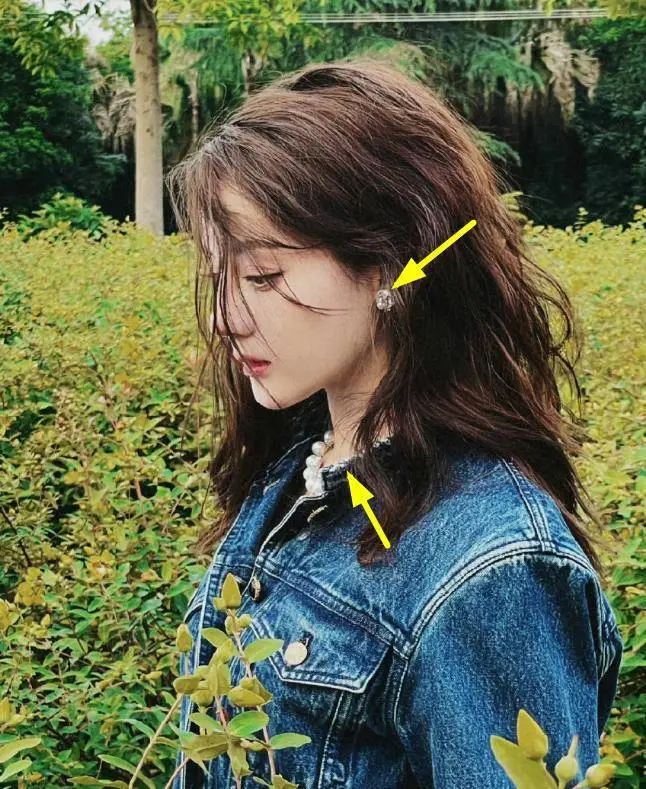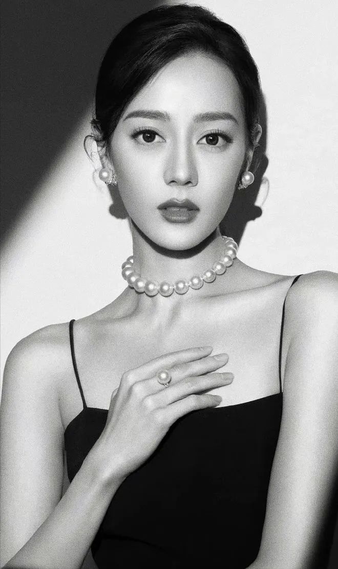 迪丽热巴素日里的写真,以及活动现场,也同样佩戴着御木本珍珠。