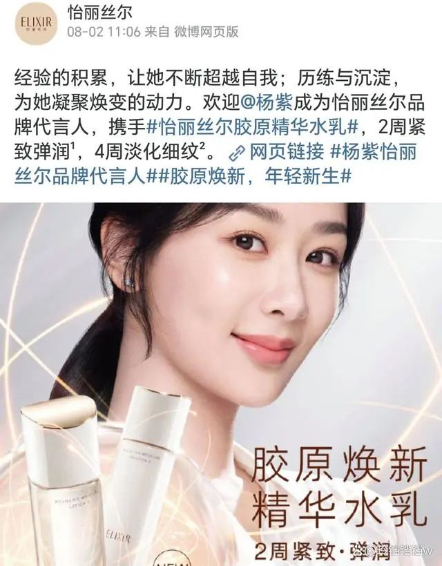 日本将核污染水排海后,明星中最先被质疑指责的是杨紫,因为她代言了日本化妆品牌。杨紫代言的怡丽丝尔是日本旗下品牌,同时她还代言了日本知名品牌安耐晒。
