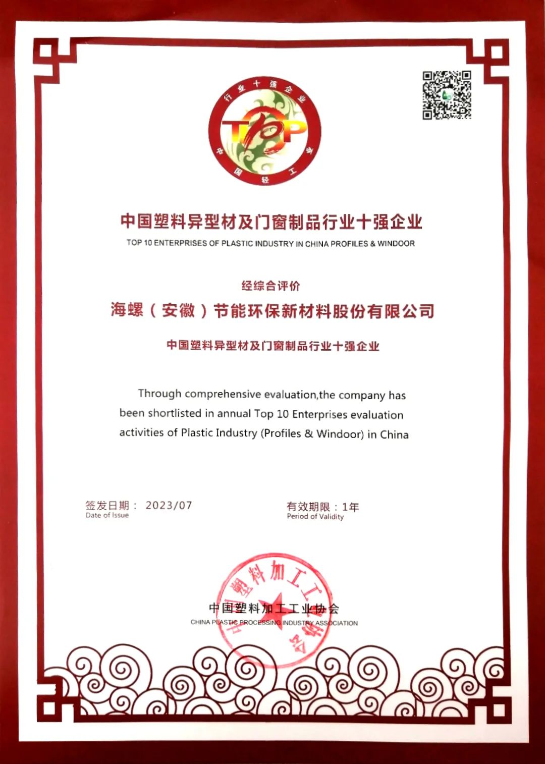 近日,“中国塑料异型材及门窗制品行业十强企业”名单公布。经综合评价,海螺新材成功入围“中国塑料异型材及门窗制品行业十强企业”!