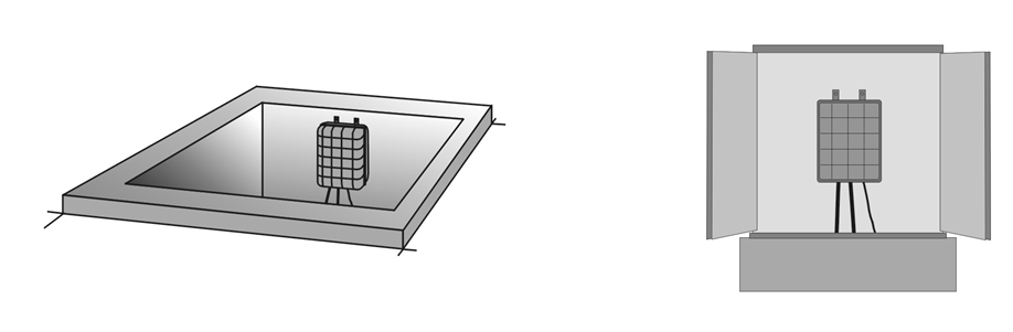 采集器外壳采用工程塑料制造,具有防水、防腐、耐压、耐冲击的特点。在工程施工时,可将设备直接埋入地下,但为了便于检修,应建造设备井来放置和固定设备。设备井应密封并具有排水功能,避免长时间积水渗入设备内部,也可在地表建造坐地电箱用来固定设备,如图所示.