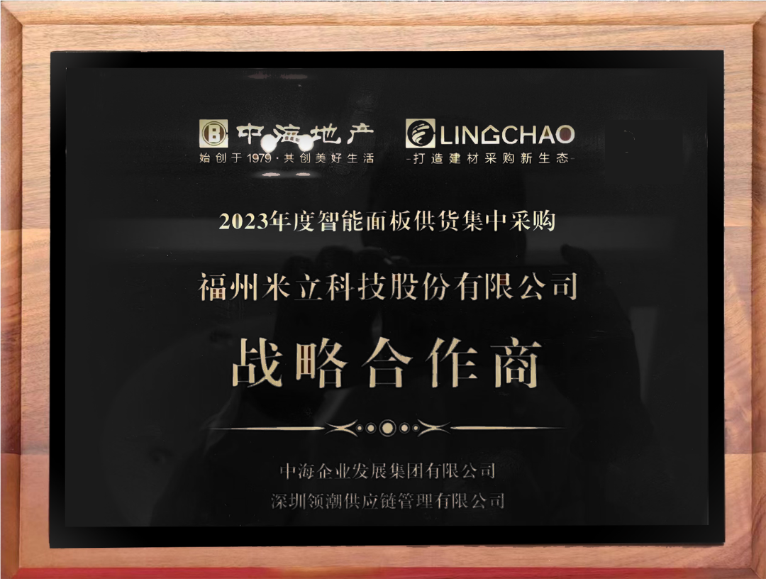 曼科开关是中国电工行业具有用户渗透力的开关品牌,38年开关插座制造企业,先后获得100+项专利、广东省制造业企业500强等资质荣誉。拥有先进完善生产设备,拥有“中国合格评定国家认可委员会”认可的CNAS实验室等。曼科开关表示,未来也将继续聚焦核心业务方向,不断提升产品与技术的创新能力,为客户和合作伙伴提供强有力产品和服务支撑,助力推动中国工程建设的高质量发展。近日,中海企业发展集团(领潮供应链)集采中标发布仪式在深圳举办。米立科技作为中标单位受邀出席,并于会上获授“2023年度智能面板供货集中采购战略合作商”证书,签订集采协议。据悉,福州米立科技股份有限公司成立于2014年,是一家专注于全宅智能家居系统研发、生产、销售和服务为一体的创新型高新技术企业。米立科技表示,2023,是新的集采期的开始,也是双方合作的延续与加强,米立将充分发挥专业优势,与中海地产保持紧密互动,做好各地落地项目的保障工作。