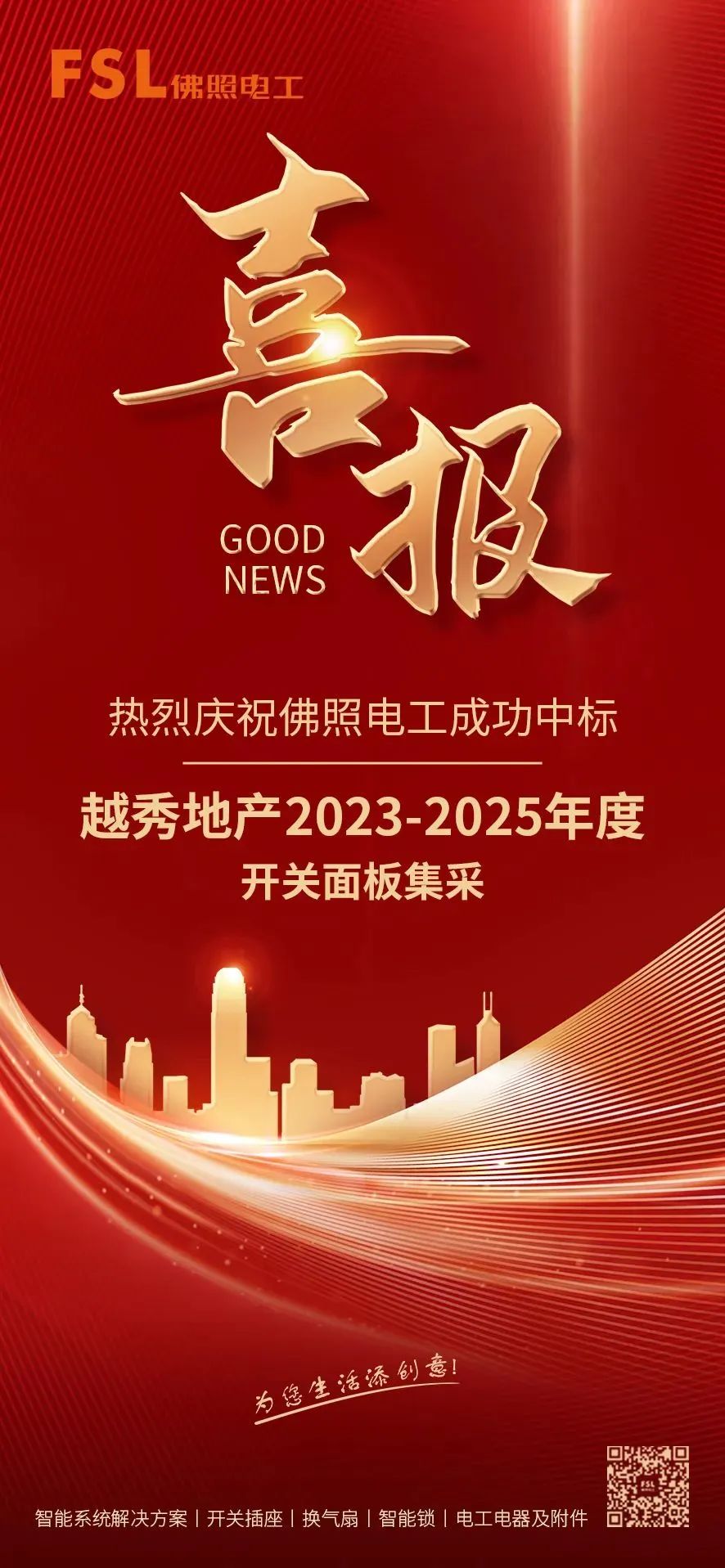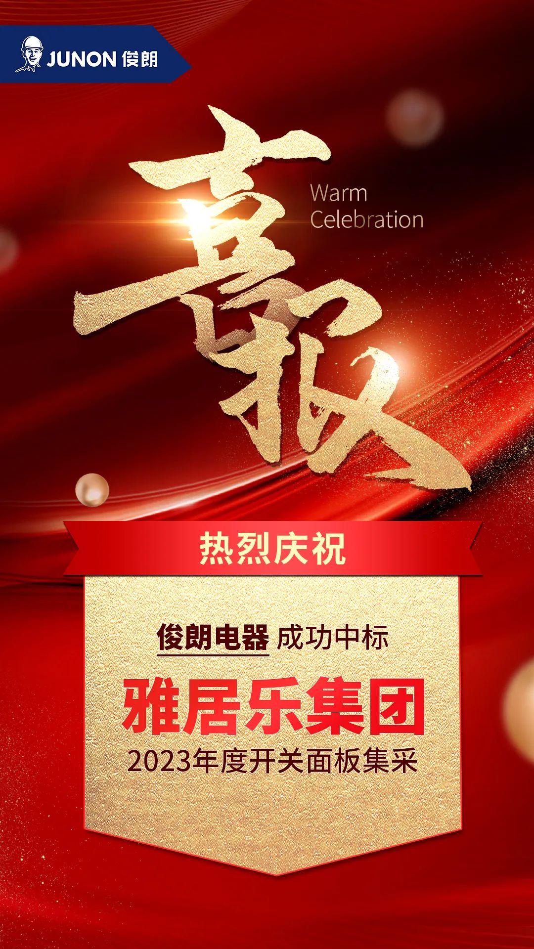 凭借着过硬的品牌、产品及服务综合实力,俊朗电器连续中标雅居乐集团2023年度开关面板集采及绿地地产2023-2025年度开关插座面板供应商。