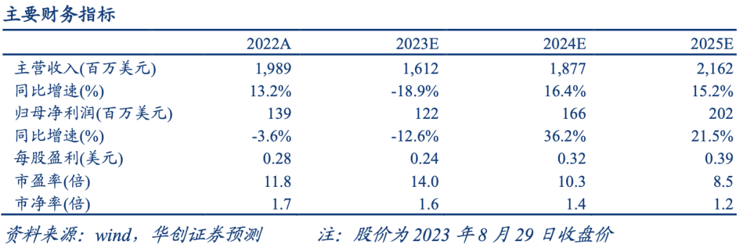 公司发布23H1业绩公告,实现营业收入7.4亿美元,同比-26.3%;实现净利润0.49亿美元,同比-22.7%。