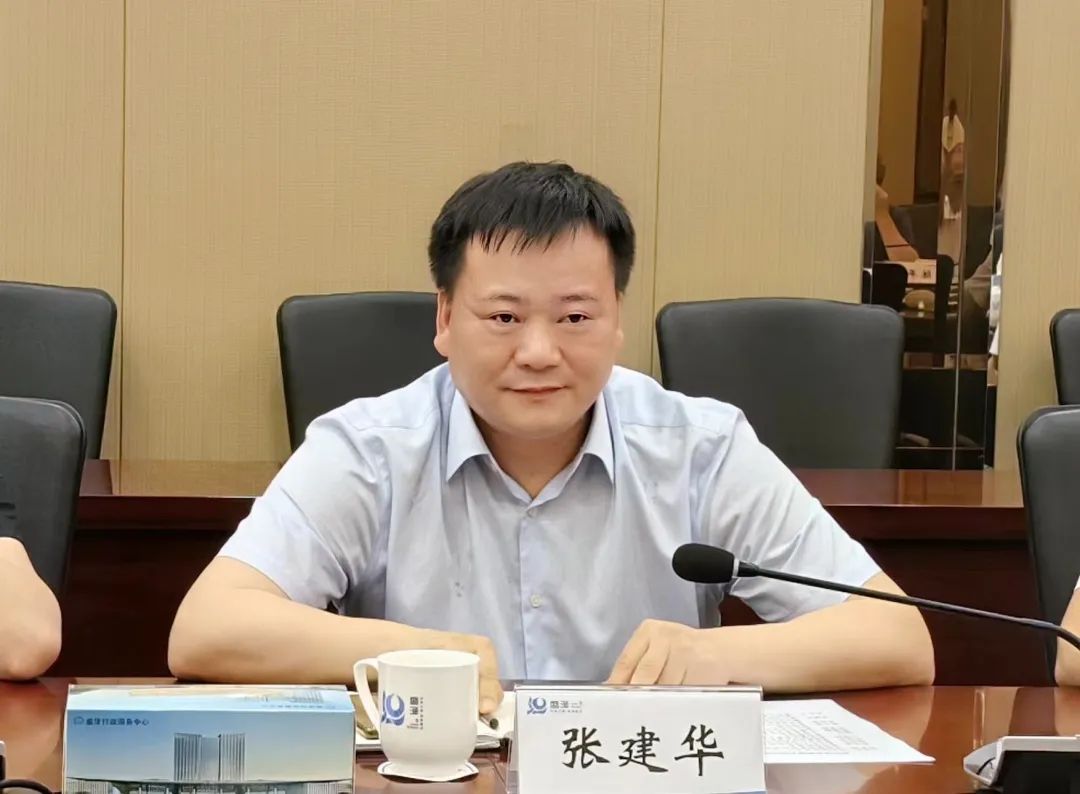 张建华向考察团一行介绍了盛泽镇纺织产业的发展情况,以及近年来通过时尚设计引领产业转型的相关举措。