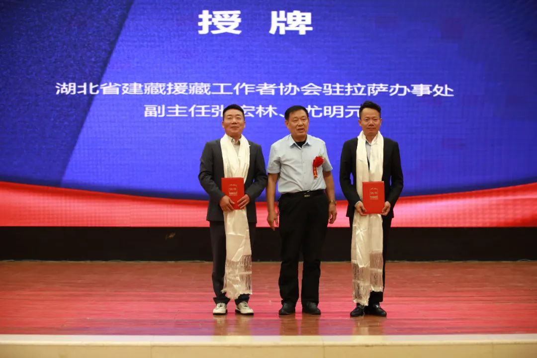袁光泽为新当选协会驻拉萨办事处副主任张宏林、尤明元授牌。