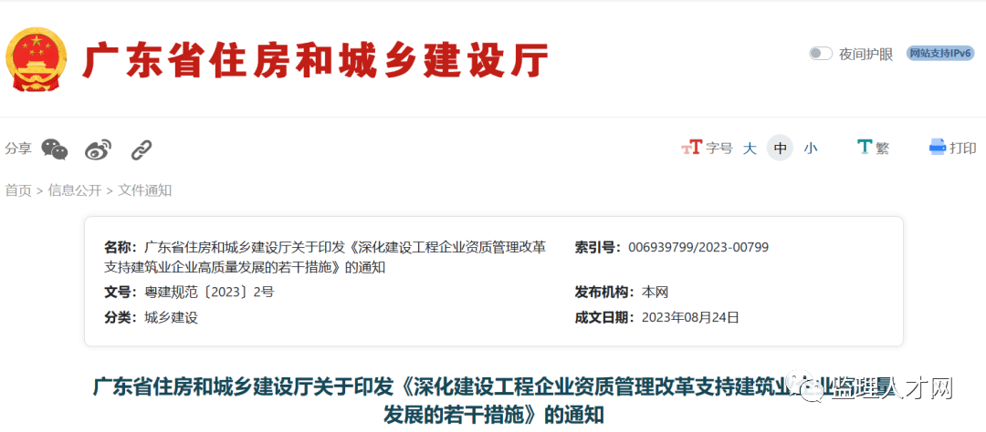 8月24日,广东省住建厅印发《深化建设工程企业资质管理改革支持建筑业企业高质量发展的若干措施》。自2023年9月23日起施行,有效期1年。