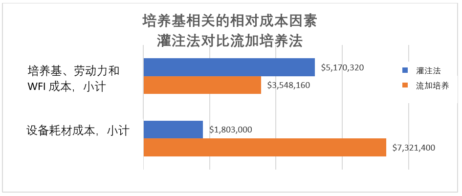 图1. 培养基相关的相对成本因素,灌注法对比流加培养法