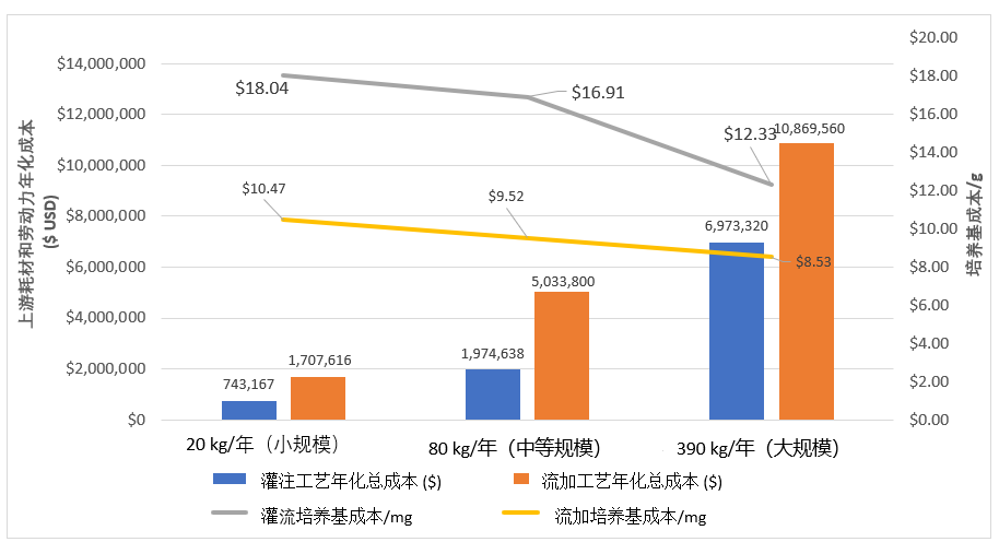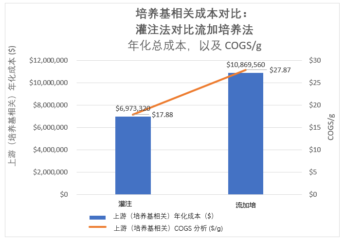 图2. 对比:灌注法对比流加培养法年化总成本,以及COGS/g