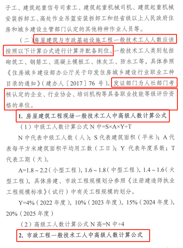 2.市政工程一般技术工人中高级人数计算公式