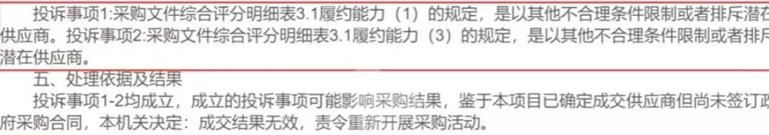 最终啊,财政局判定投诉成立,结果无效,责令重新开展采购活动,那这个问题的产生呢,咱们大家一听啊就明白了,这个评分的设置呢,应该不是业主拍脑门想出来的,也不是招标代理公司呢,凭经验做出来的,一定是某些人呢,根据自身优势量身定制出来的,但是随着法规的越来越完善了,这些路子呢,估计是越来越行不通了。