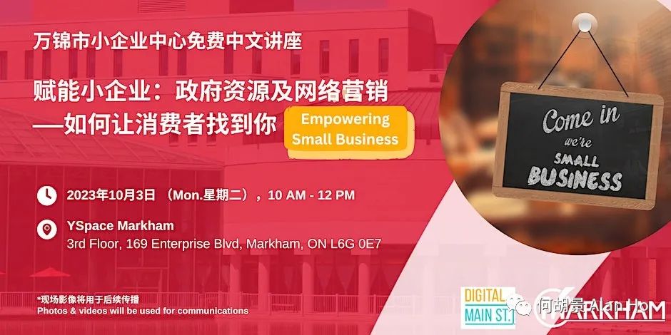 10月3日,萬錦市小企業中心及數字營銷服務團隊,將為廣大小企業和店主,帶來又一場免費的中文講座,為大家解讀政府資源和扶持政策,分享網絡營銷多項秘籍——幫助您觸達更多的消費者。