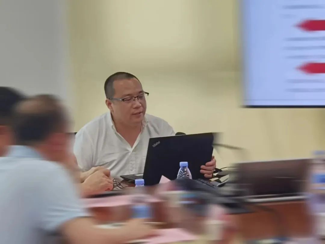 省建筑材料设备有限责任公司业务发展与管理部经理陈钰明向与会人员介绍建筑材料设备有限责任公司基本情况、合作方向以及拟开发建材电子采购平台的BC类材料线上商城功能。