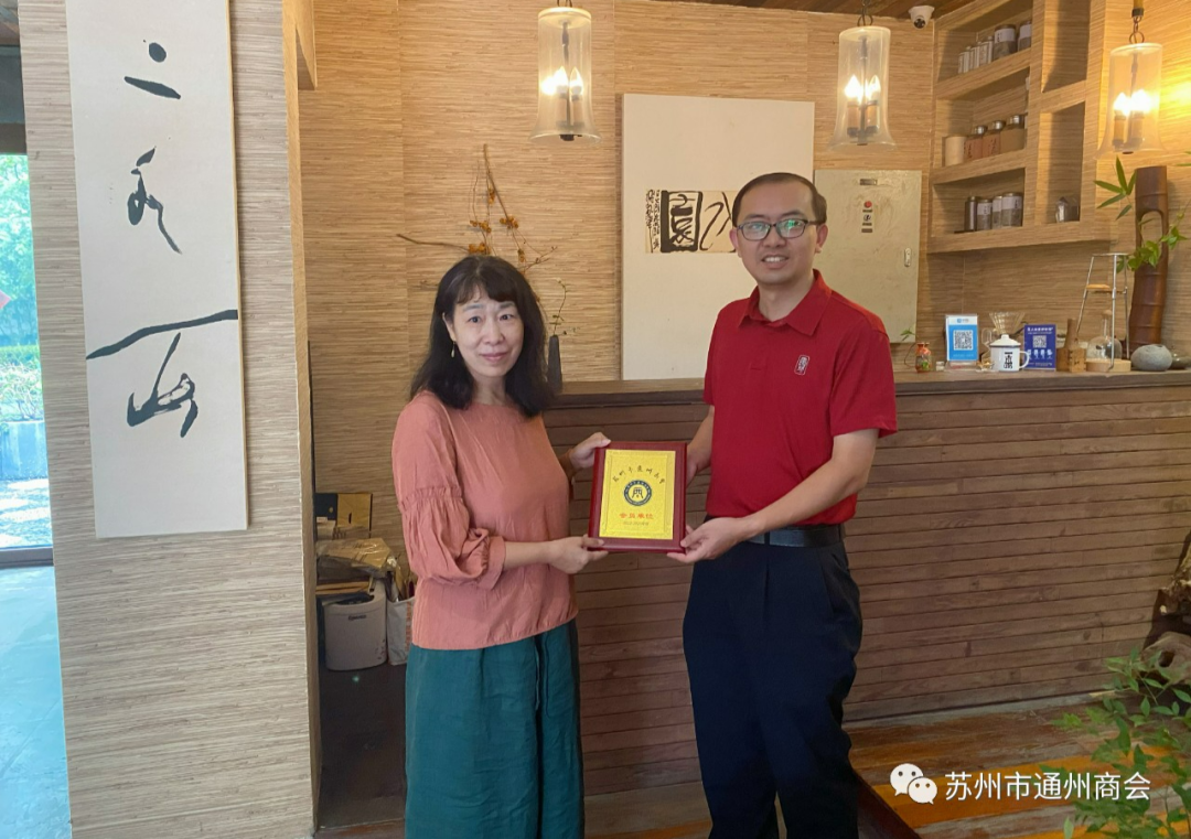 商会秘书长黄飞代表商会向新会员浦潇湄颁发商会会员牌匾。