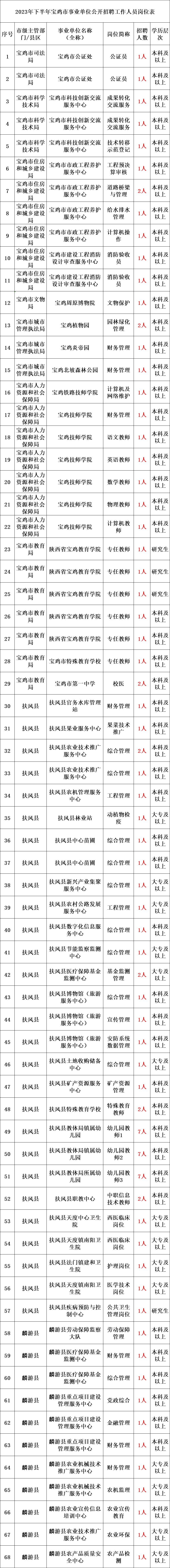 根据《事业单位人事管理条例》《陕西省事业单位公开招聘工作人员实施办法》及相关规定,2023年下半年面向社会为省属事业单位统一公开招聘293名工作人员(含中央驻陕事业单位5名)。现将有关事项公告如下: