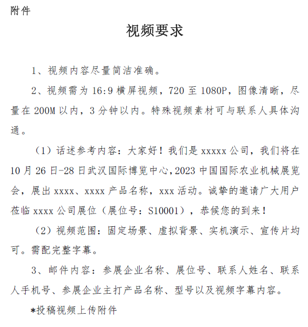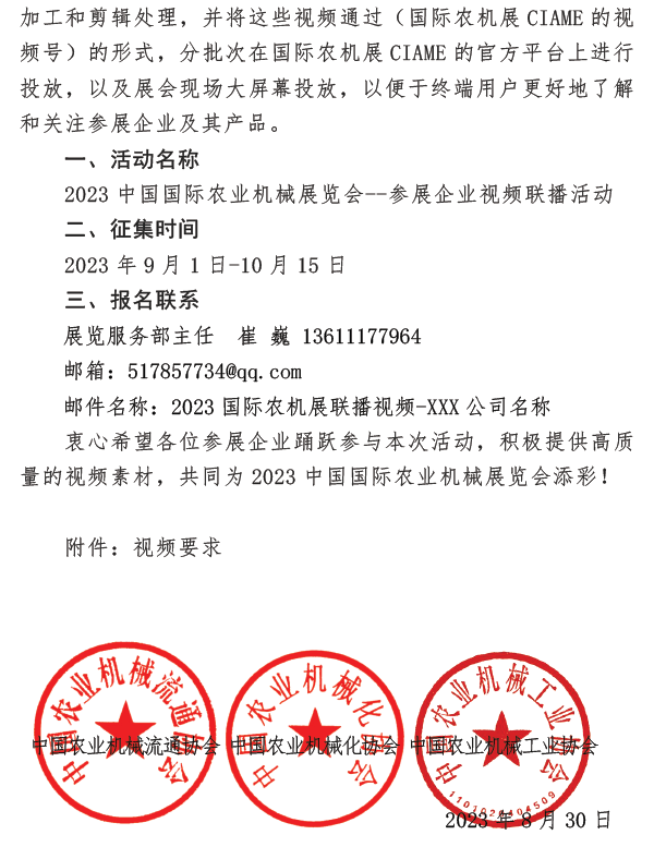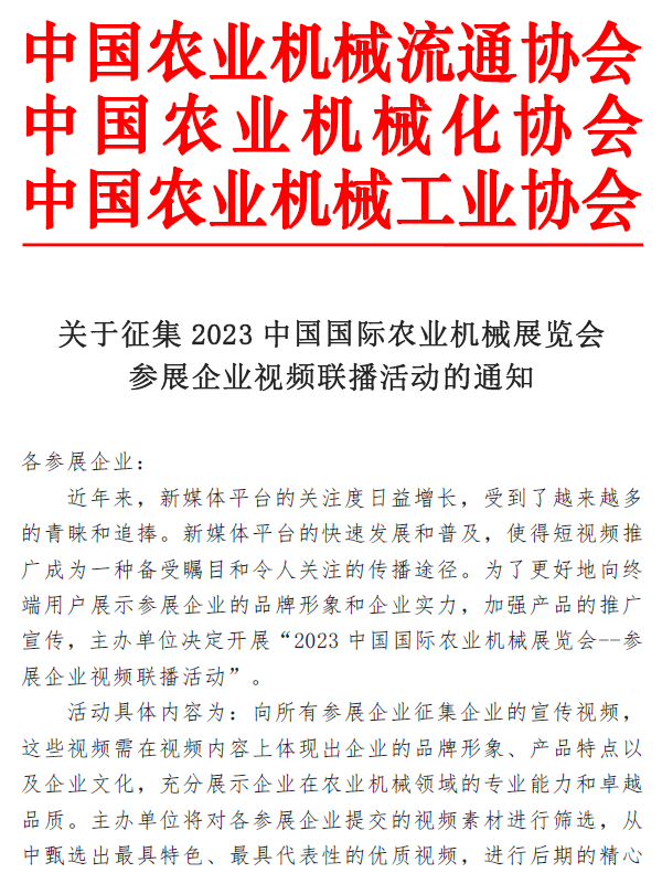 关于征集2023中国国际农业机械展览会参展企业视频联播活动的通知