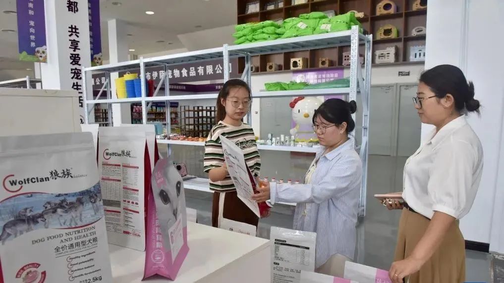 8月30日,顾客在河北省邢台市南和区贾宋镇一家宠物用品生产企业电商展厅了解产品信息。