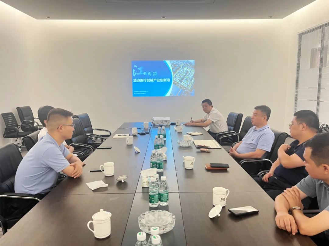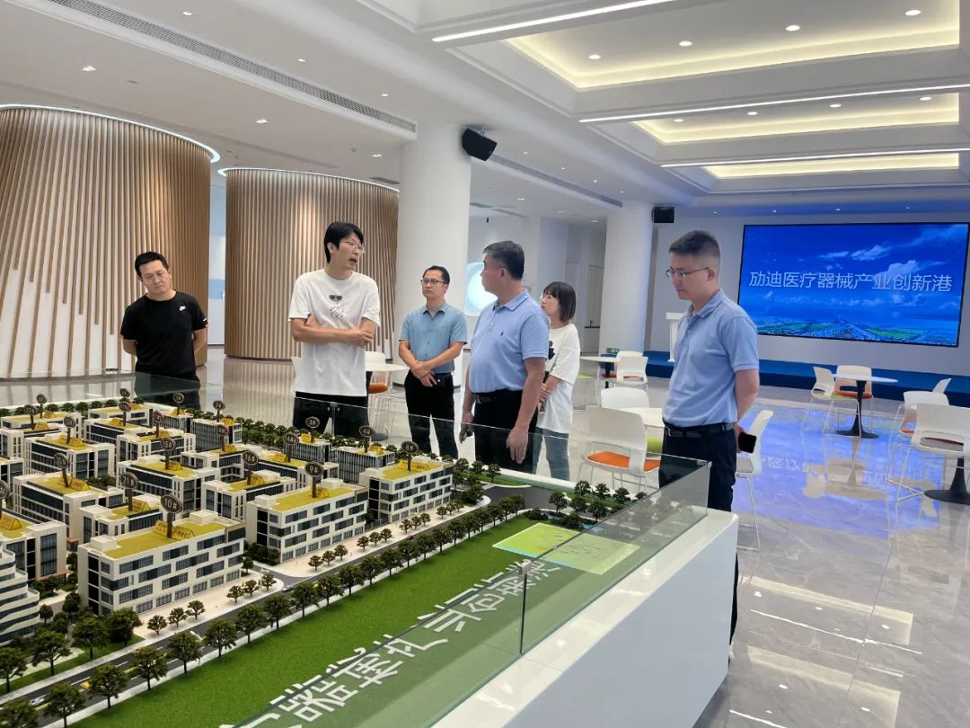 黄韧副主席一行详细听取了劢迪医疗器械产业创新港的建设、产业导入、产业服务等情况汇报,参观了科瑞迈吉等已入园高科技医疗器械项目,并与劢迪创新港总经理石磊、力行创新总经理王力楠等进行了座谈交流。