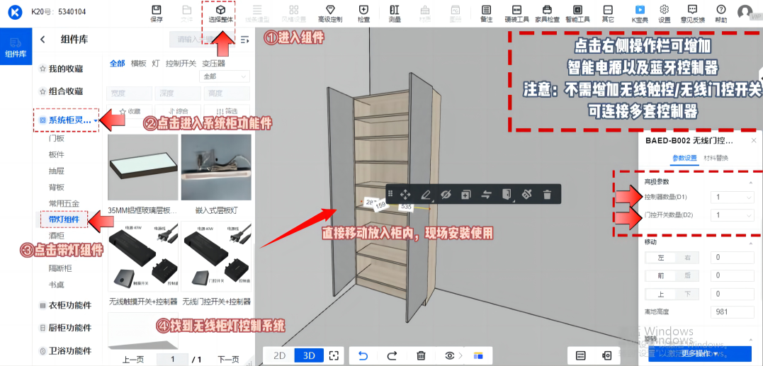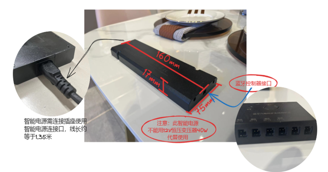 ② 使用此柜灯无线智能控制系统需预留电源插座