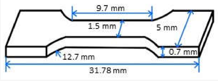 在200°C下通过熔融共混方法制备PLA/TPU共混物,其中PLA与TPU的质量比不同(30/70、50/50和70/30)。简而言之,将预设质量比的PLA和TPU混合物在80°C的烘箱中干燥4小时。将PLA/TPU混合物加热至200°C至熔融状态,然后以2.94MPa将其注入模具中以形成PLA/TPU板材。将板冷却至30°C,使用激光切割,制备了如图1所示的哑铃形样品。样品用400、800、1200和2500粒度的CarbiMet纸连续进行机械研磨,然后用1μm氧化铝浆抛光。抛光后的试样在50°C的炉中置于空气中退火24h,以释放样品制备过程中引入的残余应力,然后在炉中自然冷却至室温。