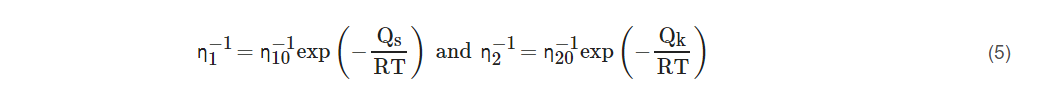 根据热激活过程的理论,η1和η2的温度依赖性遵循Arrhenius关系: