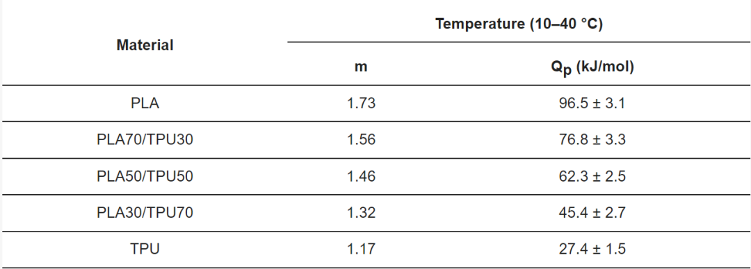 表2. 蠕变后PLA/TPU共混物恢复的m和Qp数值