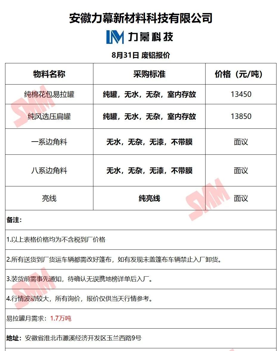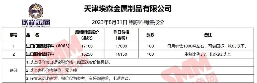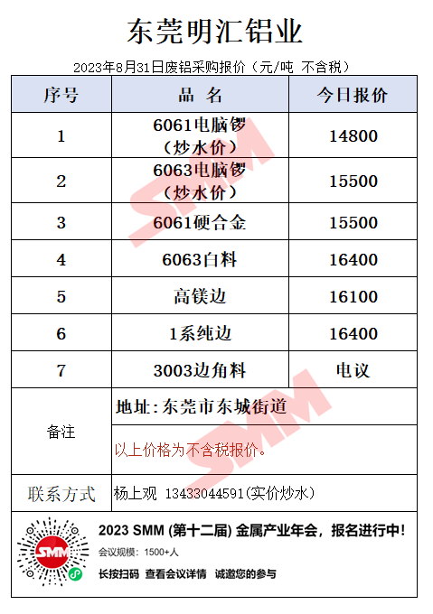 以上报价是当日截止至13:00,上海有色网(SMM)合作企业的废铝报价更新!您如需查看当日更多企业报价,欢迎下载”掌上有色“APP或扫下方二维码进入"SMM废金属万人群”