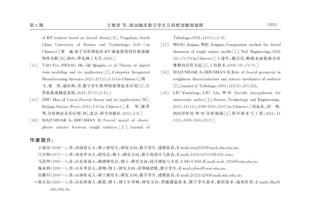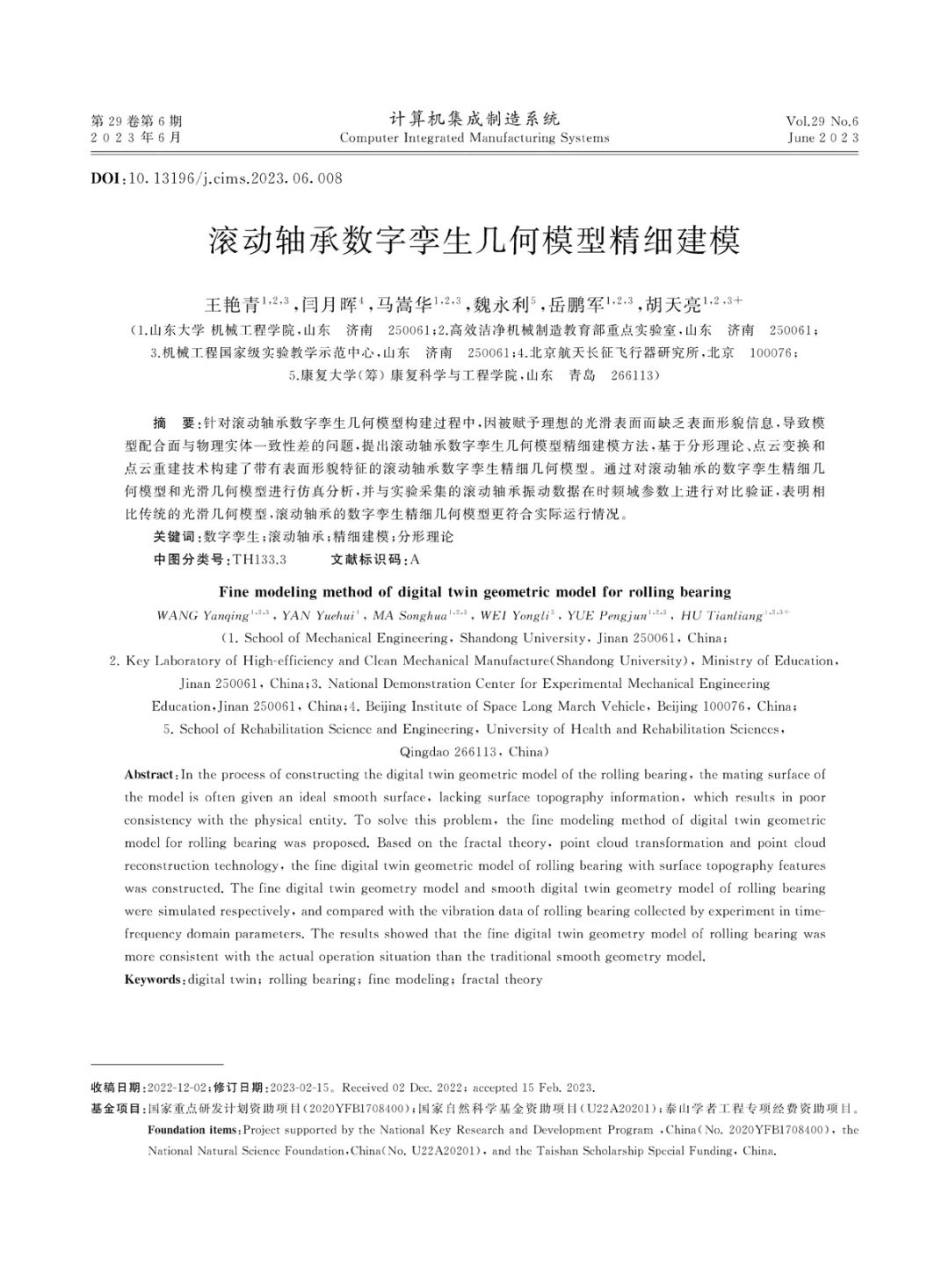 王艳青,闫月晖,马嵩华,魏永利,岳鹏军,胡天亮.滚动轴承数字孪生几何模型精细建模[J].计算机集成制造系统。