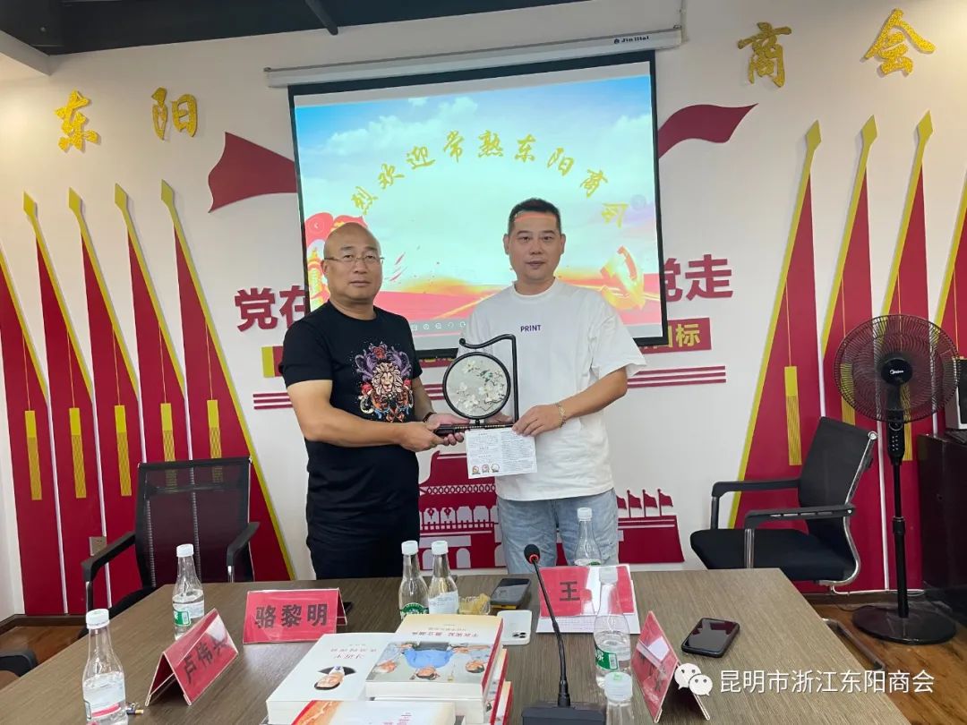 2023年8月9日,在郑州东阳人联谊会党工委书记、会长卢希忠、副书记陆加木、第一支部书记卢伟东、第二支部书记陈跃龙的带队下,一行41人来到了昆明市浙江东阳商会。昆明东阳人联谊会党总支书记、会长王震、第一支部书记陈旭阳、第二支部副书记黄海生,支部党委们及商会的部分会员,一起在商会会议室召开了友好、氛围轻松的座谈会。