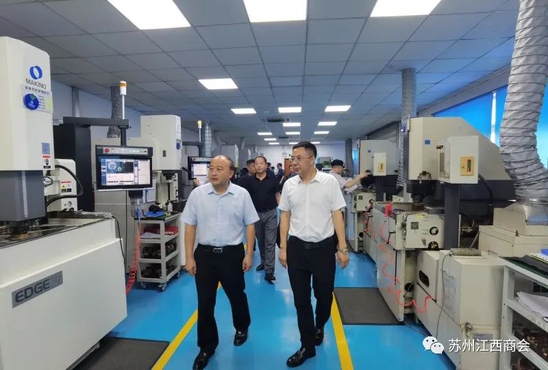 安徽广德市政协党组成员、副主席张家海、政协常委、人资环委主任程敬东、政协专委办主任李焕宏在商会理事程新来的陪同下,参观考察了商会副会长企业苏州华科精密模具有限公司,商会秘书处人员陪同考察。