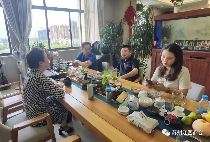 苏州市江西商会执行会长、新一届会长候选人胡策昱率商会理事刘爱林等走访乡贤企业圣奥家具科技(苏州)有限公司,与公司董事长盛莹莹座谈交流,邀请企业加入苏州市江西商会大家庭。