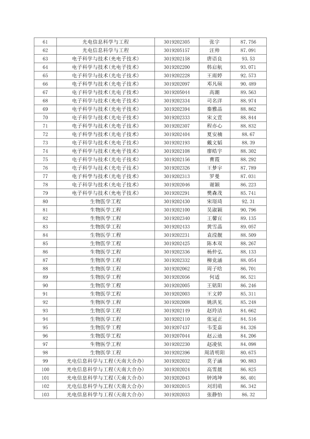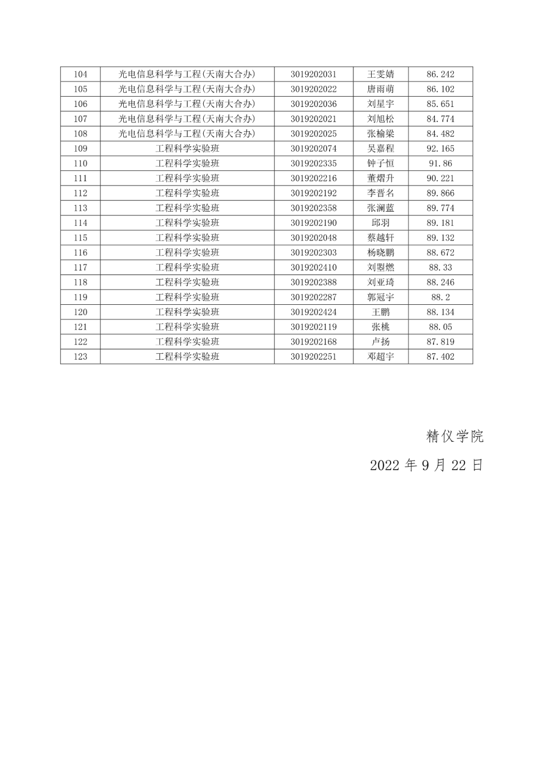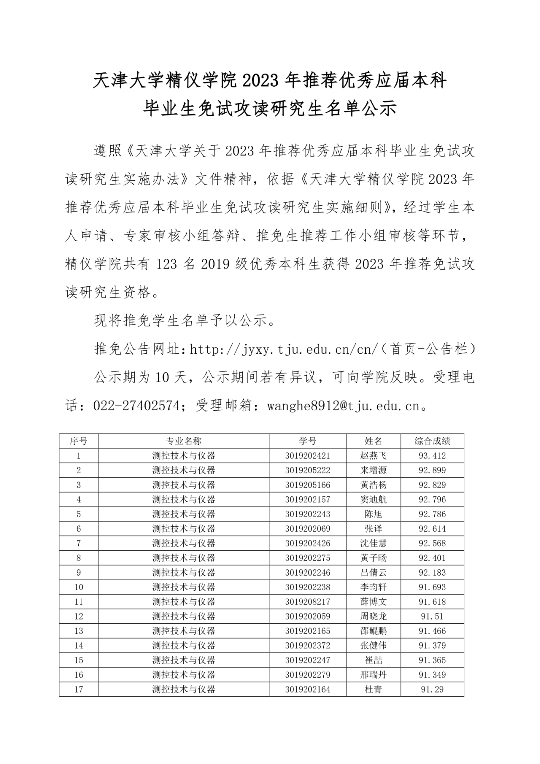 天津大学精密仪器与光电子工程学院2023年推荐优秀应届本科毕业生免试攻读研究生名单公示