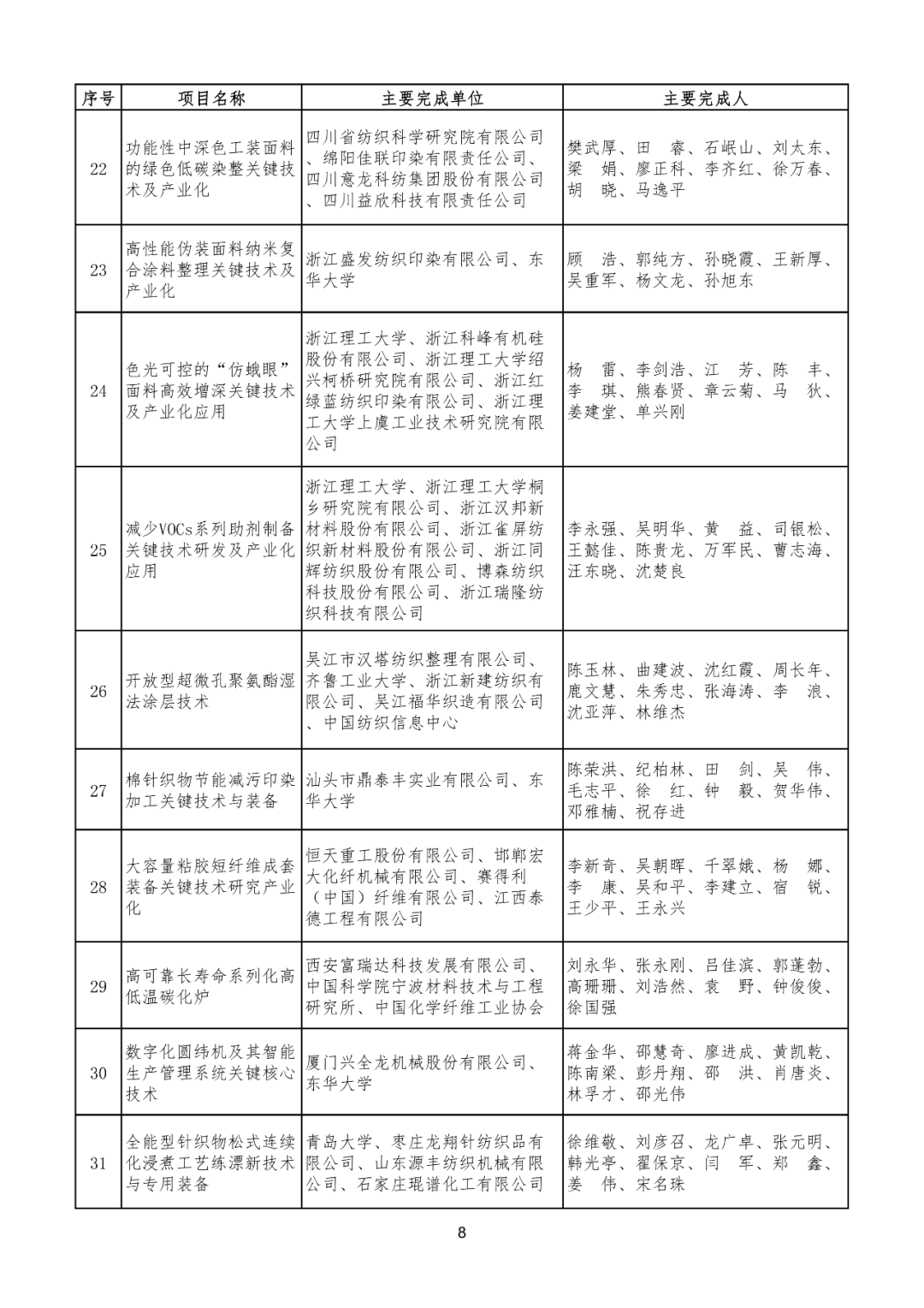 2023年度中国纺织工业联合会科学技术奖评审工作近日结束,于8月31日进入公示阶段。建议授奖项目共67项,其中:技术发明奖6项,含一等奖3项,二等奖3项;科技进步奖61项,含一等奖14项,二等奖47项。