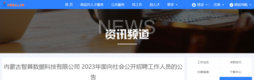 内蒙古智算数据科技有限公司2023年面向社会公开招聘工作人员的公告