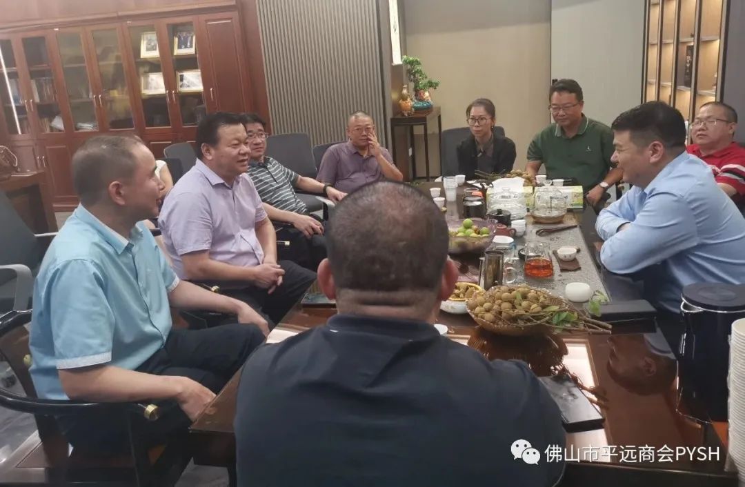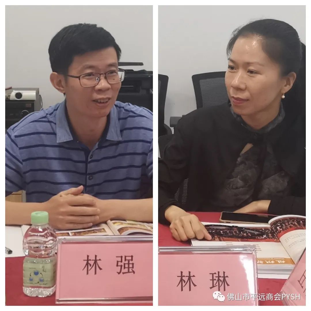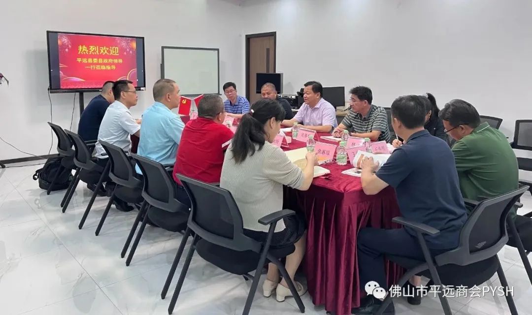 领导一行随后来到佛山市平远商会座谈交流,丘明会长向与会领导介绍了平远商会成立的背景、发展历程以及商会文化理念和成立宗旨,介绍了商会为在佛山工作生活和学习的平远籍人士提供一个沟通交流、畅谈乡情的温馨家园,为会员企业搭建平台,架构行业桥梁,促进社会和谐稳定,发挥自身能量和桥梁纽带作用,团结更多乡亲乡贤以及有识之士;介绍了目前商会会员群体分布于不锈钢行业、陶瓷建材、家居定制行业等等,在佛山的每一个角落都有平远人勤奋的足迹。