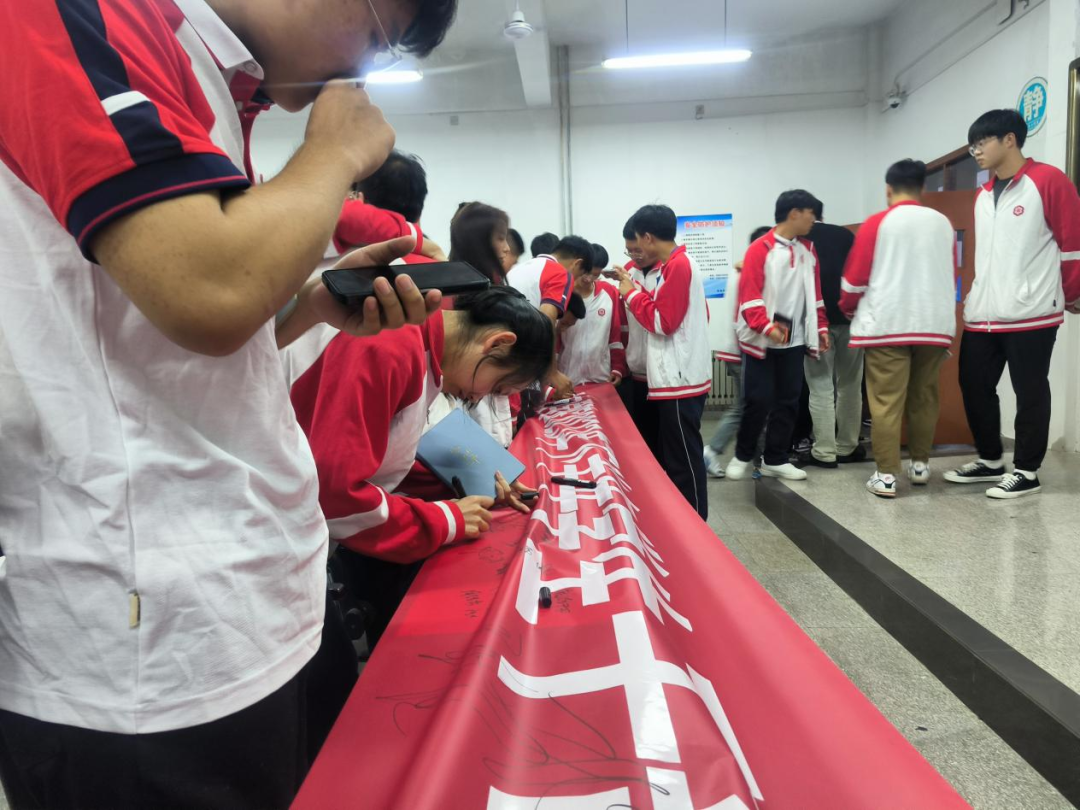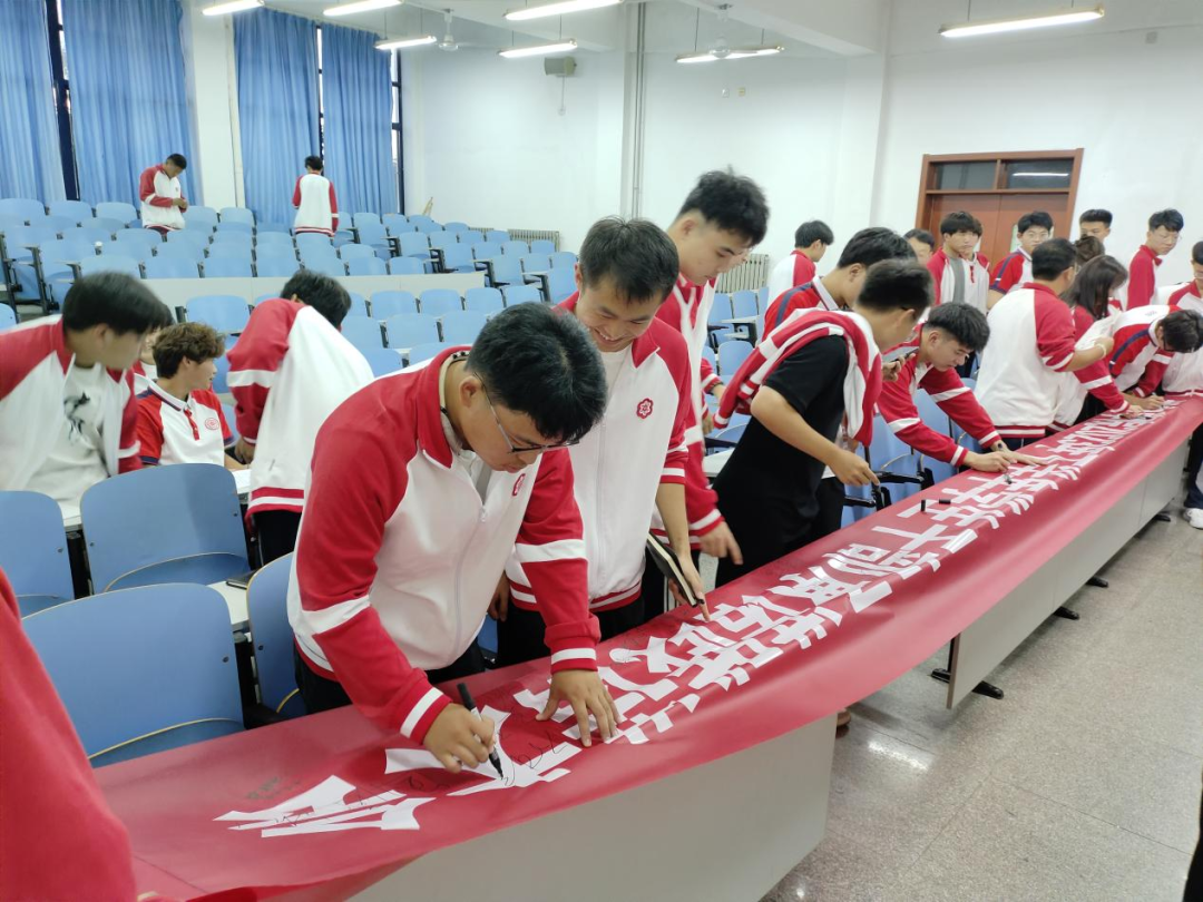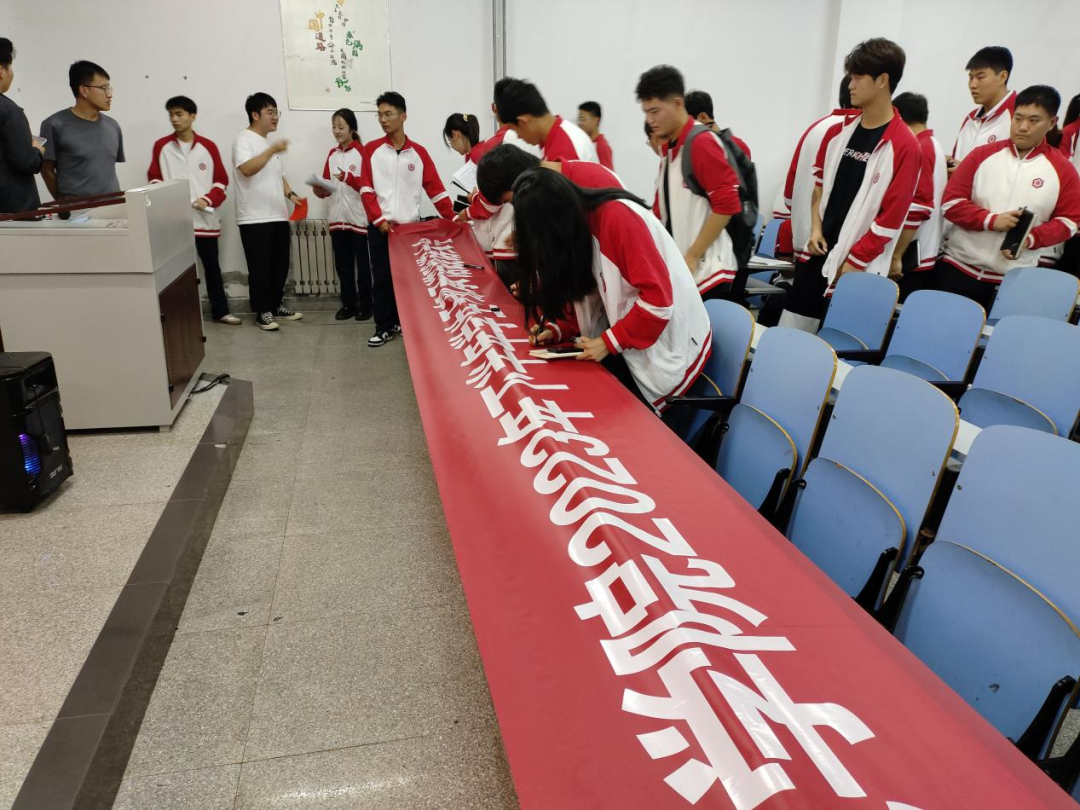 五、学生干部在承诺践诺大会横幅上签字。