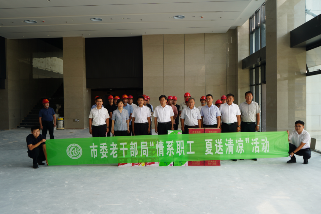 市委老干部局副局长龙翼天一行督导调研智慧城市运营中心建设情况,并开展“情系职工、夏送清凉”慰问活动。副区长、公安分局局长王琦,区委组织部副部长、老干部局局长范志平,总经理王新伟,副总经理秦明乾、韩东伟、范臣等陪同。