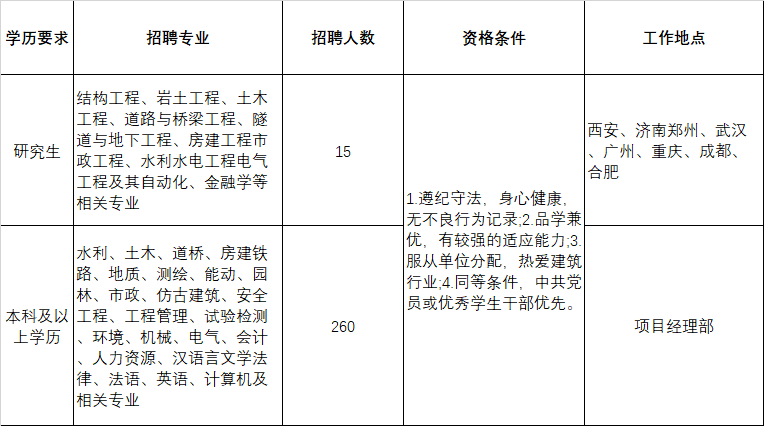2.福利:六险两金(养老、医疗、工伤、失业、生育、大病医疗、住房公积金、企业年金),取暖费、降温费、区域补贴、伙食补贴、通讯补贴、野外施工津贴、安全岗位津贴、劳保费用、学历提升补贴、注册执业资格证补贴等各项津补贴,定期体检,各类培训,年休假、婚丧假、产假、陪护假、冬休假等各类假期。