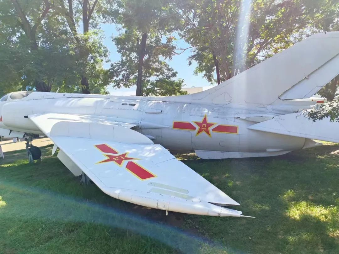 在沈飞航空博览园外部展区的草坪上,陈列着13架不同型号的实物飞机,有歼5、强5、歼6、歼教6、歼7、歼8、歼8 II等,它们都曾是我国领空的坚强卫士,许多战机在实战中歼敌无数,立下了赫赫战功。