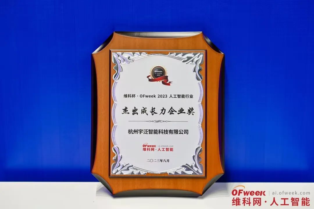 2023年8月30日,OFweek 2023(第八届)人工智能产业大会暨评选颁奖典礼在深圳成功举办。经过OFweek网络投票、专家组评审及组委会综合评审三轮激烈紧张的评选,对近300个参评项目进行了综合实力考量,宇泛入围了“维科杯·OFweek 2023人工智能网行业杰出成长力企业奖”名单,并最终获奖。