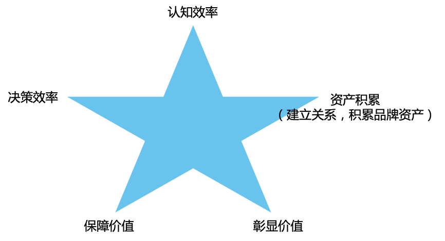 总结来说,品牌有五大作用,认知价值,保障价值,彰显价值,决策效率,资产积累(建立关系实现资产积累)。