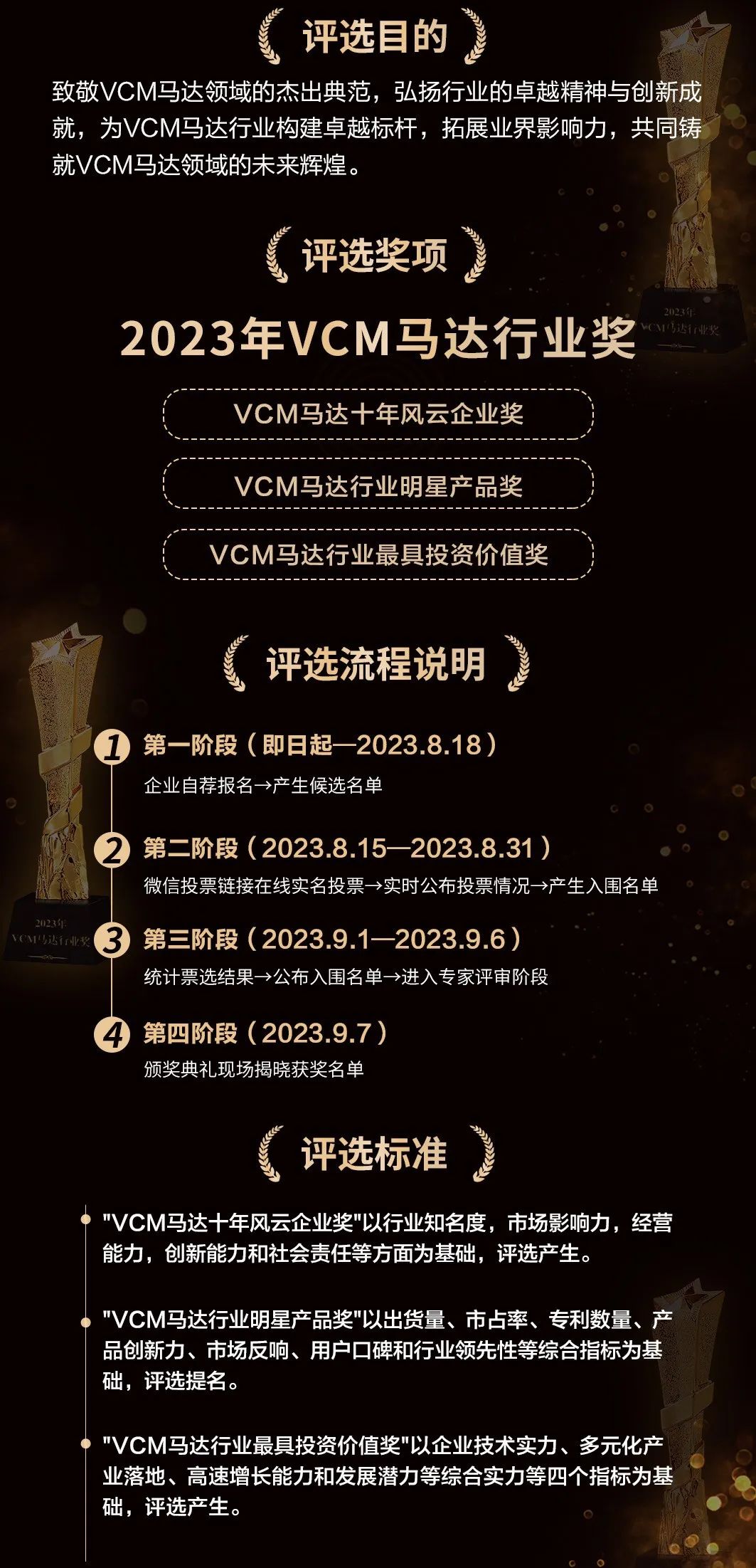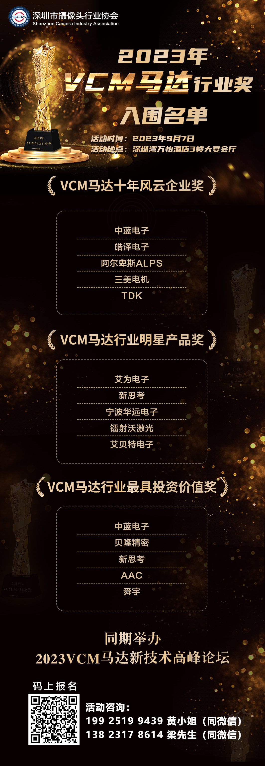 精彩揭晓|2023VCM马达行业奖入围企业名单公示,中蓝电子、新思考等15家企业入围