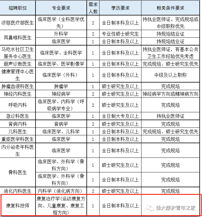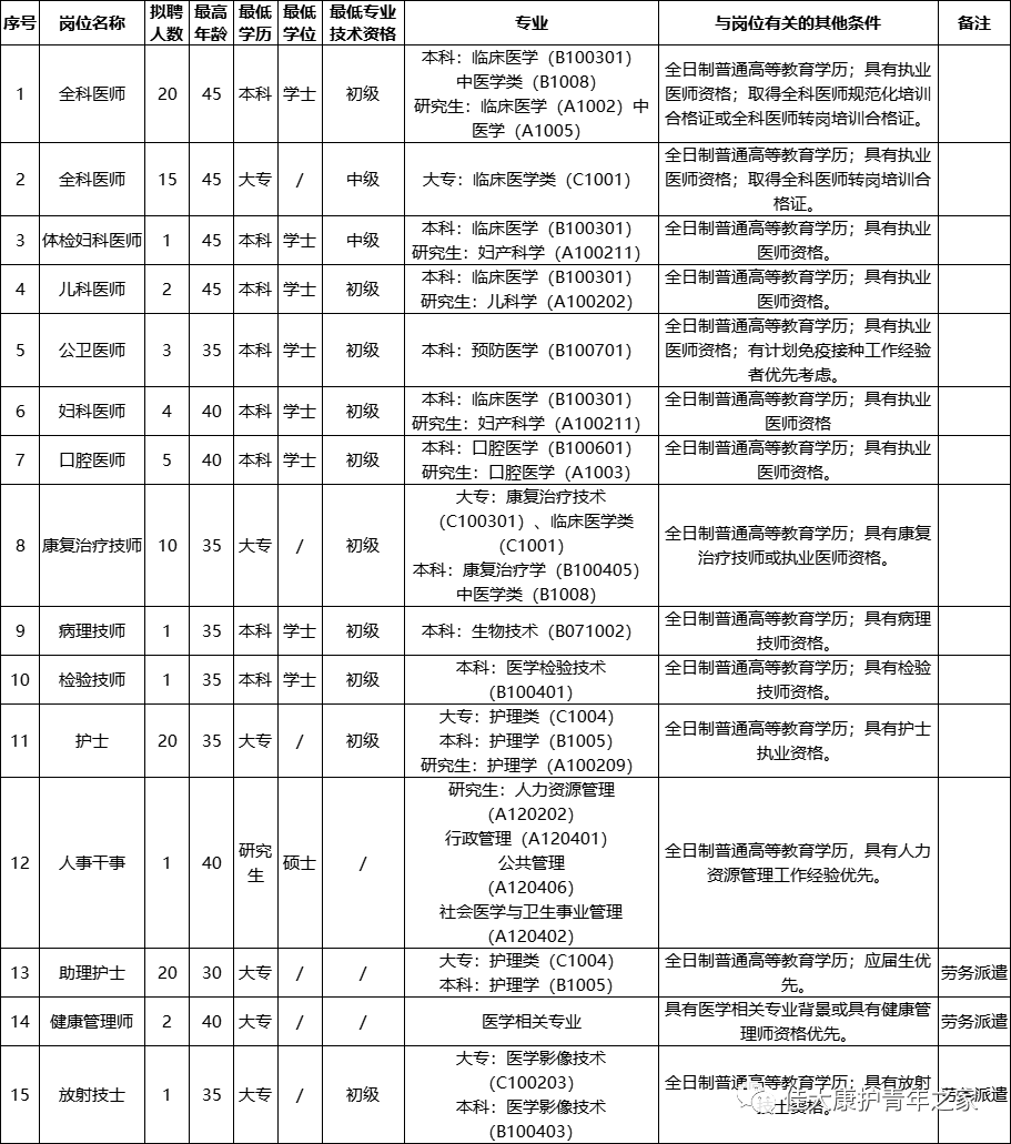 注:以上岗位,均要求年龄35周岁及以下。如个人服从调剂,医院根据考核情况调剂到空岗应聘