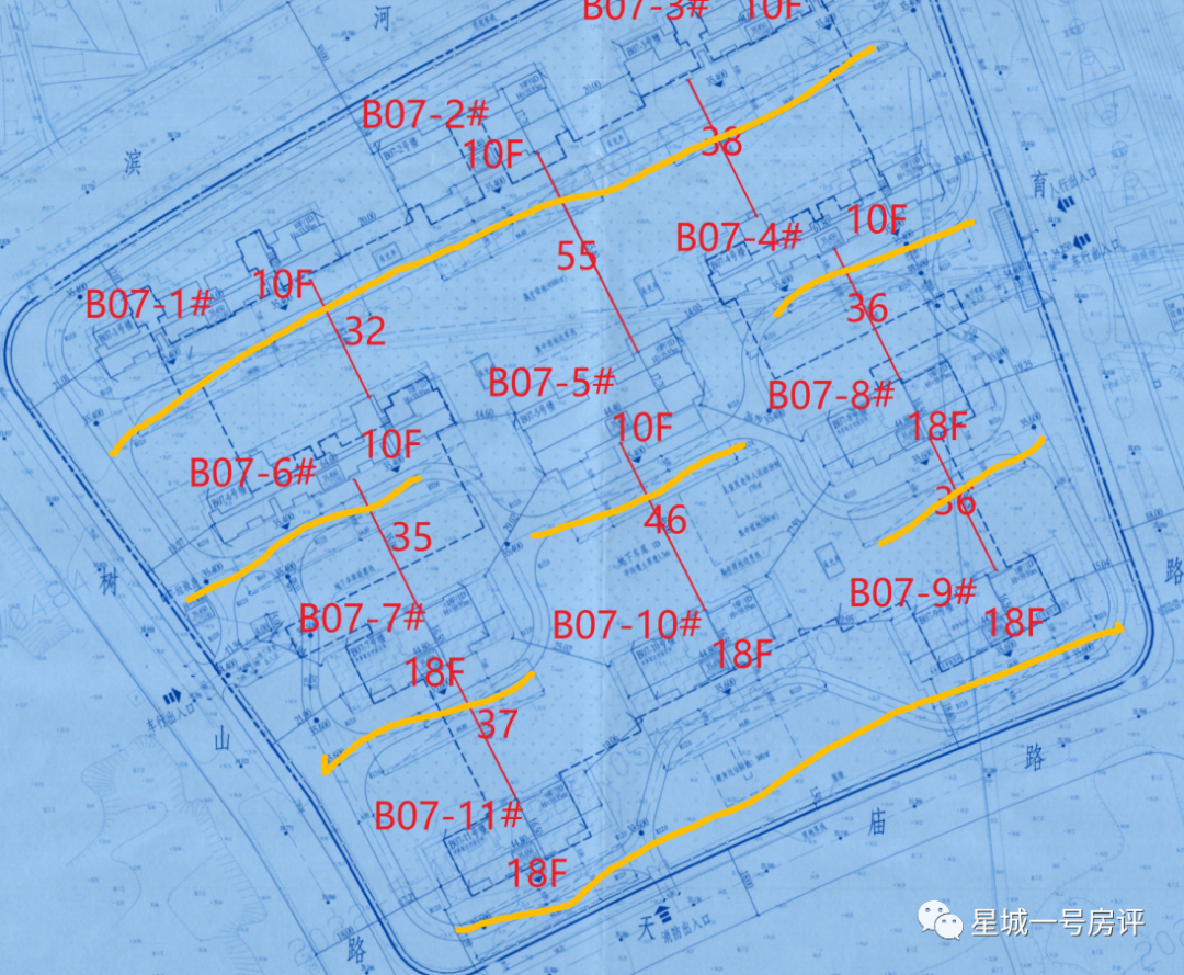 3、楼栋间距主要为35~40米左右,相较楼栋高度来说,间距还可以。