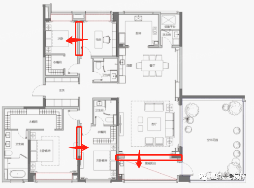 1、卧室有东西朝向房间,夏天体验相对较差;