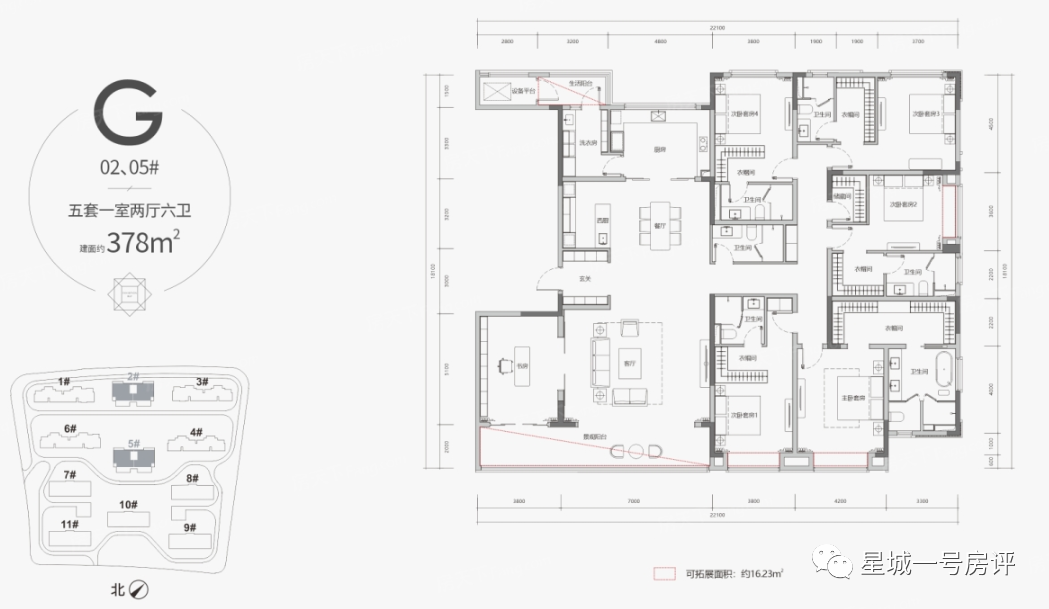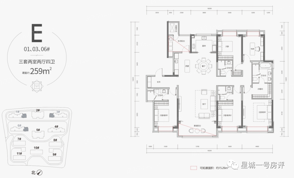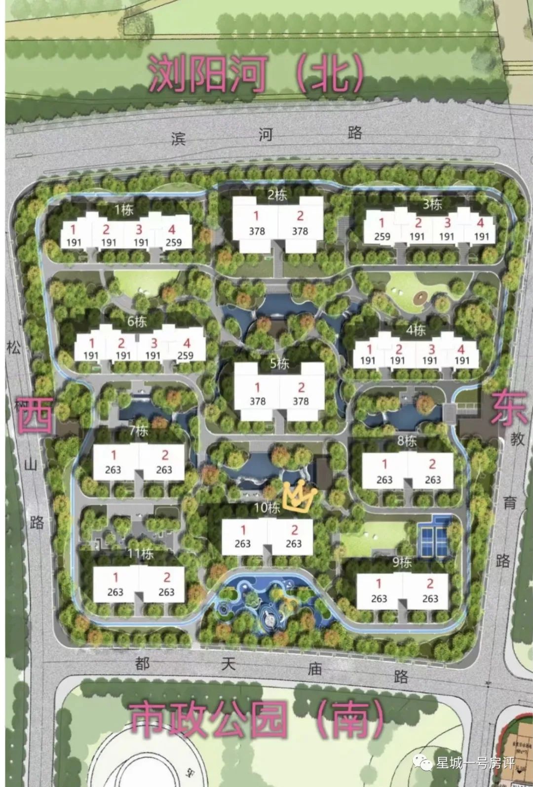 北侧为线性公园,在户型普遍朝南的情况下,从观景面来说,南侧的9~11#区位较好,喜欢静谧点的可以考虑中央的5#,要是喜欢北侧风光带,那就是前排三栋且以2#最佳。