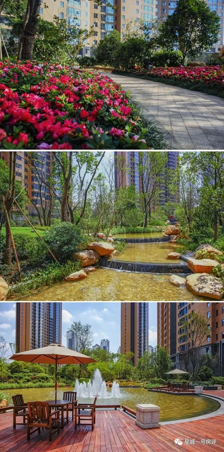 交付项目可以看下运达中央广场,小编也去看过,不是说人家营造手法有多好,架不住人家苗木选的大,铺装整齐划一,物业后期勤打理;即使交房多年,园区的绿化依然是郁郁葱葱,地面干干净净。