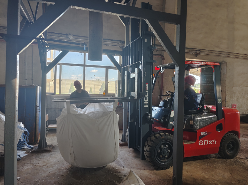 停产期间寿阳化工对硫铵包装系统进行改造,将原有硫铵成品罐抬高,下方放置吨包袋,通过气动阀控制进料量,将硫铵直接装进吨包袋,由叉车进行码垛,可节省包装费用35.57万元/年。图为寿阳化工复产硫酸铵首次出料。(梁 艳)