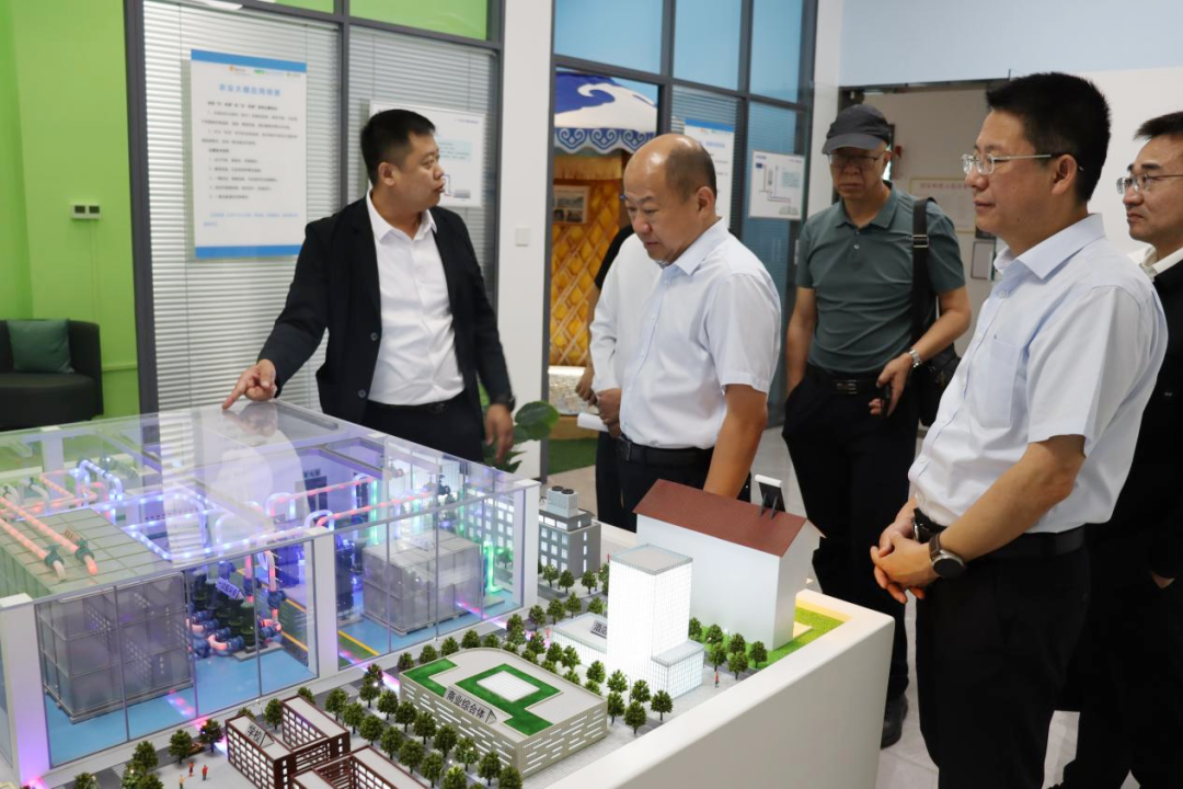 郭利平一行先后参观了内蒙古环投集团企业文化展厅、中润环投数据中心、产品展示中心,及西附楼冷热联供技术应用机房,详细了解了中润环投“电模块”热源核心技术、冷热联供一体化智能系统技术、高光效LED路灯光源节能技术及高速服务区卫厕节水、节电技术等独特优势及产品应用场景。