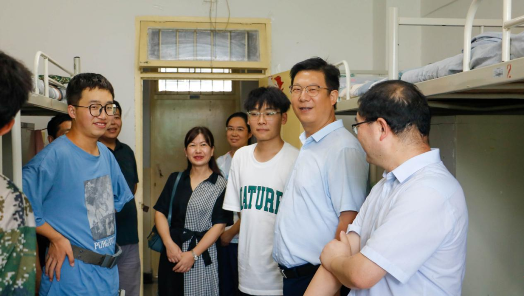 8月31日下午,机械工程学院党委书记郭小平、院长曹现刚、副书记尹弘以及2023级新生辅导员一行赴学生公寓看望2023级新生。
